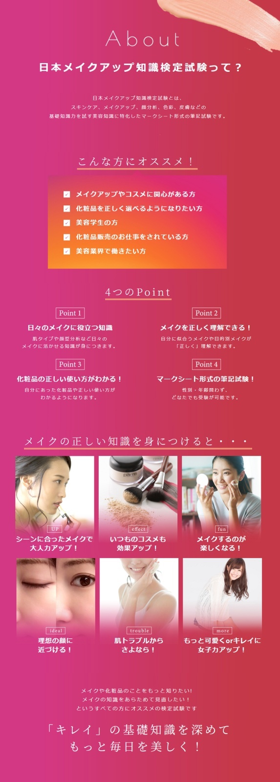 日本メイクアップ知識検定試験の詳細はJMAホームページをご確認ください。