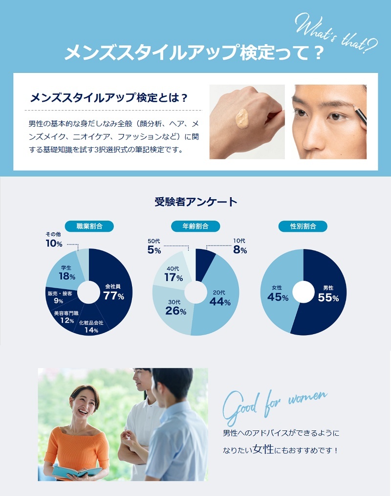『日本メイクアップ知識検定』と『メンズスタイルアップ検定』パソコンまたはスマートフォンから、24時間いつでもどこでもお好きな時に受験できます♪