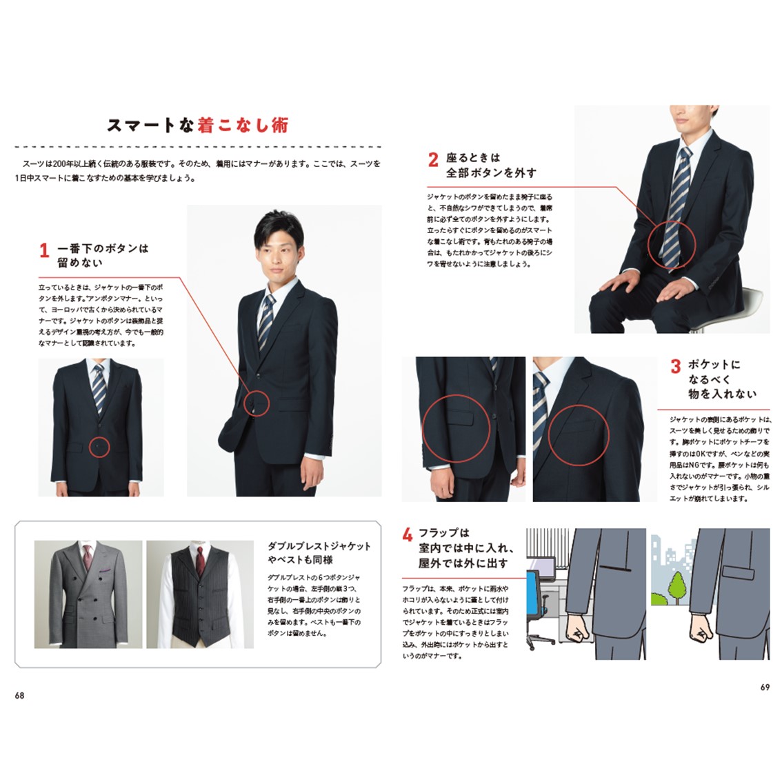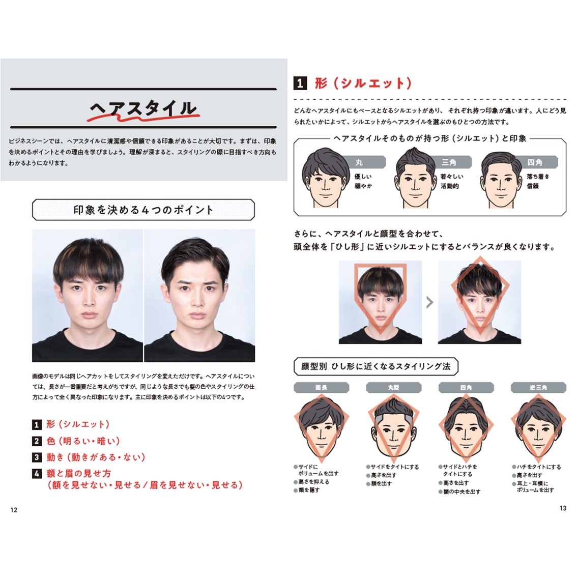 写真やイラスト入りで、ヘアスタイリングから眉の整え方やスーツの着こなしなどが学べます。